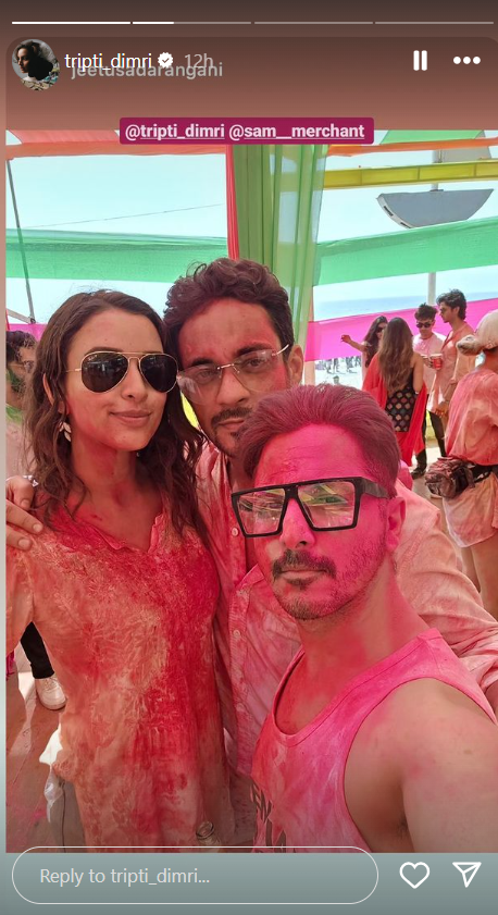 तृप्ति डिमरी (Triptii Dimri) एनिमल के बाद से लोगों के बीच छाई हुई है। प्रोफेशनल लाइफ के साथ-साथ एक्ट्रेस पर्सनल लाइफ की भी चर्चा में है। रिपोर्ट्स की माने तो एक्ट्रेस काफी समय से सैम मर्चेंट (Sam Merchant) को डेट कर रही हैं। अब दोनों ने मिलकर साथ होली भी खेली। तृप्ति ने इंस्टा स्टोरी पर फोटो साझा की हैं।