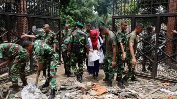 बांग्लादेश में शेख हसीना के इस्तीफा और ढाका छोड़ने से पूरे देश में आरजकता फैल गई है।आंदोलनकारियों की भीड़ देशभर में कोहराम मचा हुए है। घर मंदिरों में भी तोड़फोड़ और लूटपाट जारी है। अभूतपूर्व उथल-पुथल के बीच कई पुलिस स्टेशन वीरान हो गए हैं। राजधानी ढाका सहित देश के अधिकांश पुलिस स्टेशनों में वर्तमान में कोई पुलिसकर्मी मौजूद नहीं है।